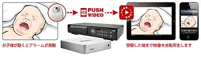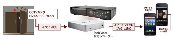 Push Videoとは、イベント検知時にスマートフォンにアラート通知し動画を送ることができる機能です。