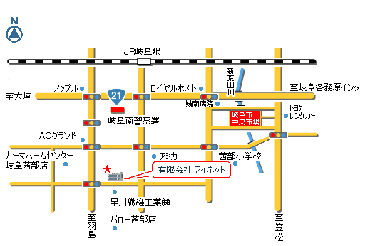 JR岐阜駅 ⇒ 茜部菱野(バス停) ⇒ 徒歩