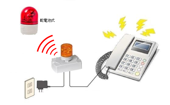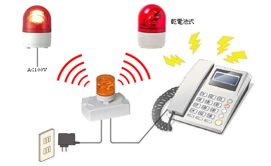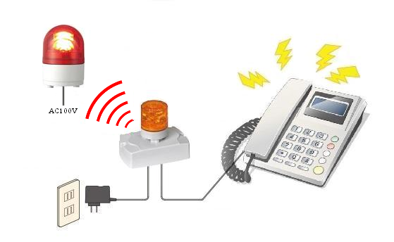 (電話の着信をブザーと回転灯の光でお知らせ)