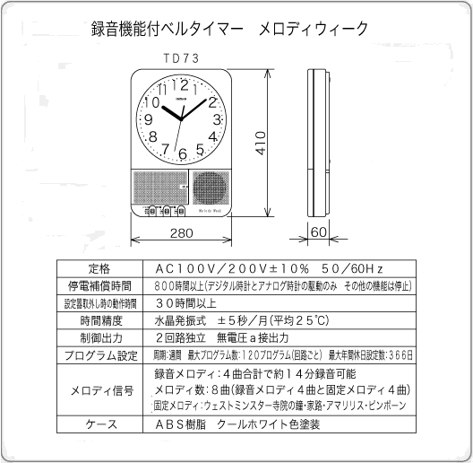 週間プログラムにより、時刻ごとに4曲(最大)の録音メロディと4曲の固定メロディの中から
